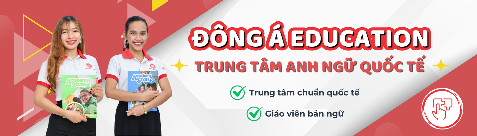 Đông Á Education thành lập năm 2015. Chuyên đào tạo về các khoá học Tiếng Anh giao tiếp, Tiếng Anh cho người đi làm, Luyện thi IELTS, Tiếng Anh Trẻ em và Thiếu Niên. Với tiêu chuẩn Quốc Tế Cambridge và được Hội Đồng Úc IDP (Hội đồng tổ chức thi IELTS) công nhận là đối tác xuất sắc trong suốt 8 năm liên tiếp.
